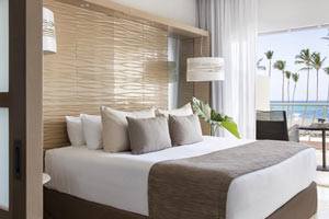 Admire the colors of the ocean from the private balcony in the Ocean View Junior Suite at Paradisus Palma Real Resort. Rest in a bedroom with a king-size bed or in the lounge area with a sofa-bed and premium minibar.